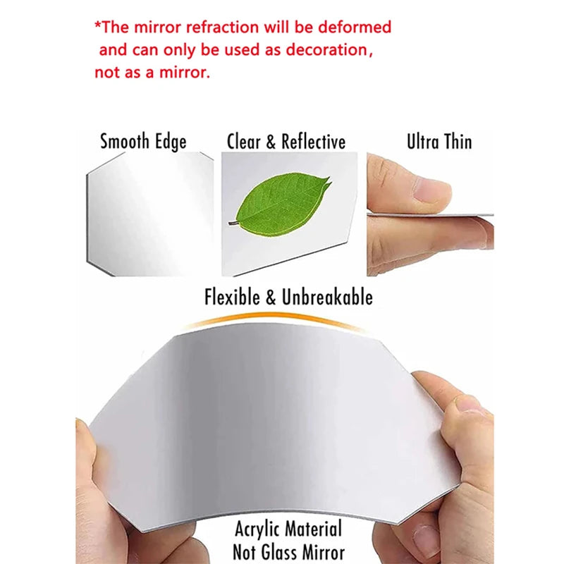 - Set Includes: 45 hexagon mirror wall stickers